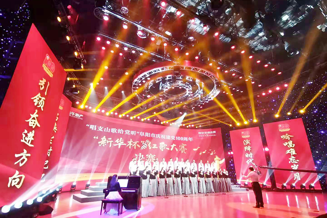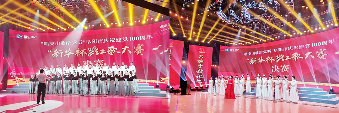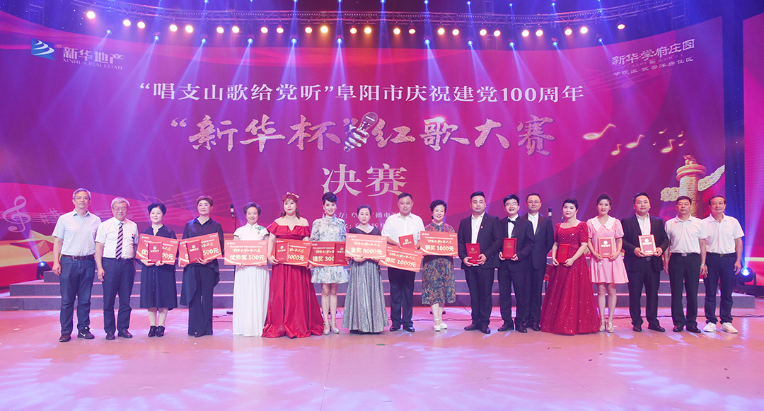7月25日,“唱支山歌给党听”阜阳市庆祝建党100周年——“新华杯”红歌大赛决赛在阜阳新华隆重举行。红心永向党,唱响新征程。决赛缓缓拉开序幕,一首首耳熟能详的经典红歌,带领现场观众走进红色历史,共同回顾党的光辉岁月。选手们用歌声唱出了热烈的爱国爱党之情,讴歌了党的丰功伟绩,表达了对祖国和党的美好祝福。让我们恭喜本次“新华杯”红歌大赛获奖选手!