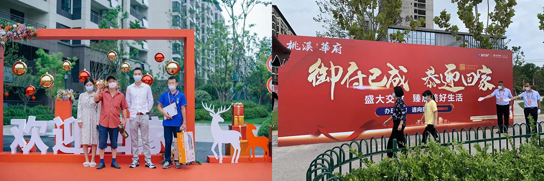 交房期间,东方御府张灯结彩,一片喜气洋洋,暖心标语随处可见,尽心服务无微不至,惹眼处“欢迎回家”四个字更是格外醒目,满满归家氛围。