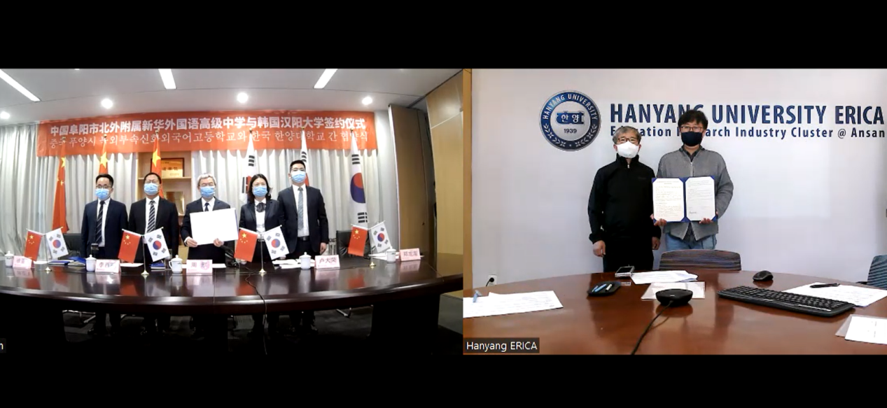 北外附属新华外国语学校与韩国汉阳大学“友好学校”线上签约仪式