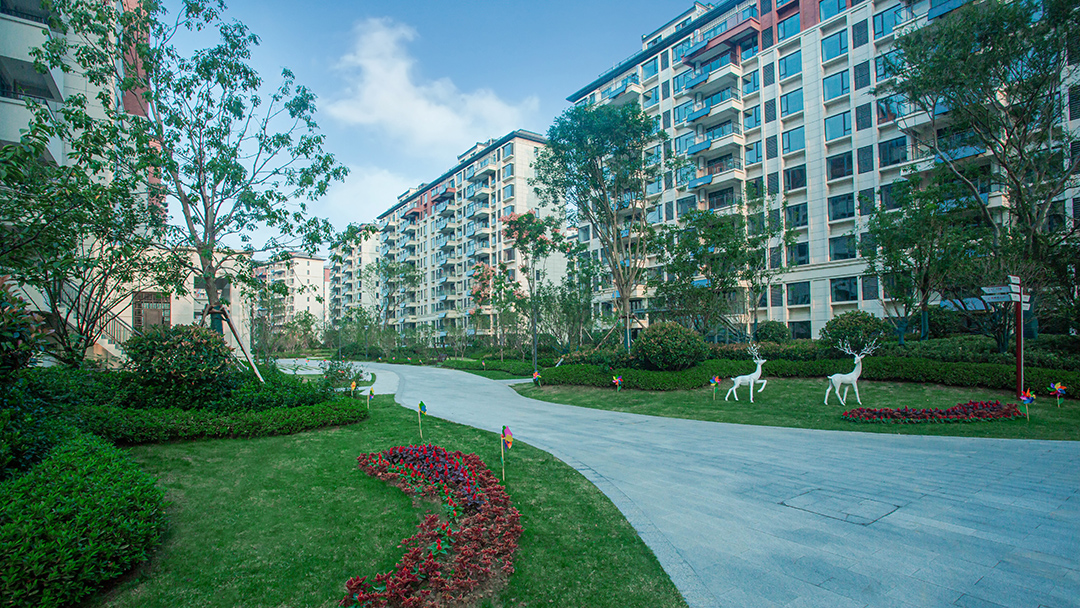 尊贵大气门庭承袭千年东方归家礼序,质感与品味兼具,筑就名门归家气度。大门设计艺术感十足,用材考究,造型简练,彰显尊贵风范;迈入大门,臻美景观映入眼帘,树木植物列队两旁,一砖一石、一草一木,迎接业主归家,每一步皆充满仪式感;步入其中,丰富景观层次,移步异景,倍感尊崇的归家之路,让居者幸福感满满。