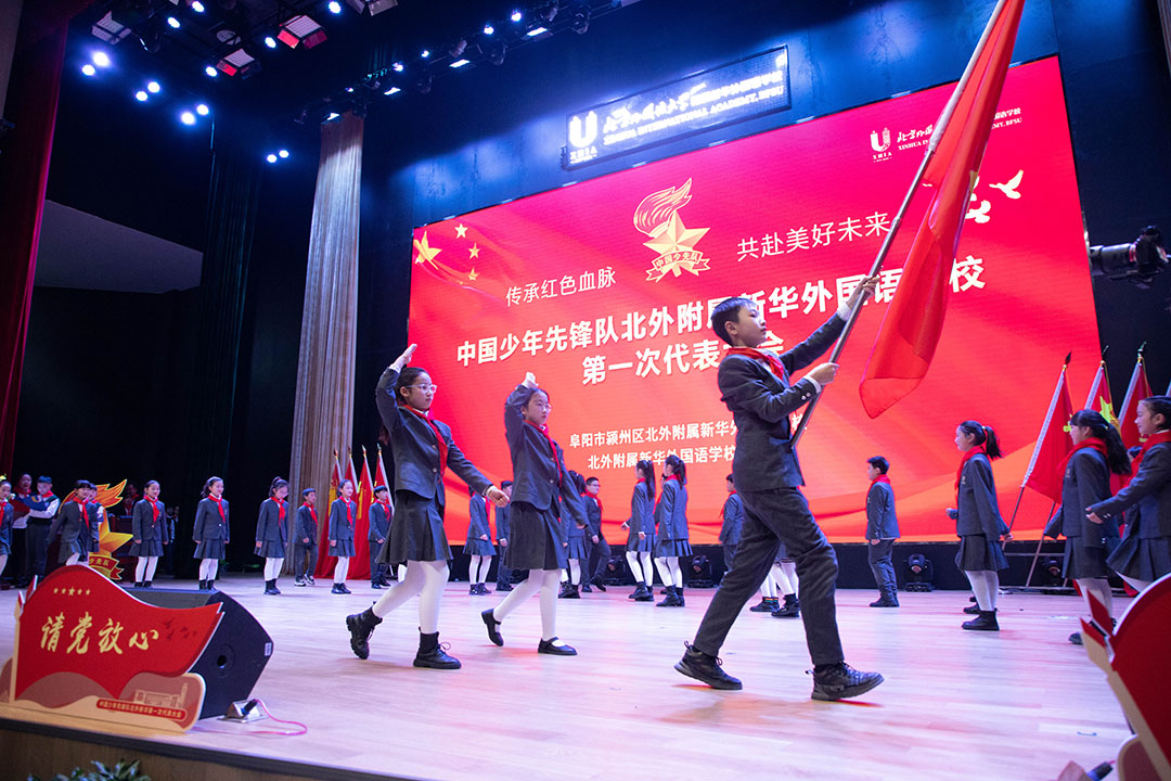 队旗飘扬,队歌嘹亮,少先队员,齐聚一堂。满载着学校少先队员们的热切期盼,承载着家长们的广泛关注,12月17日,新华发展集团旗下北外附属新华外国语学校中国少年先锋队第一次代表大会盛大召开!共青团阜阳市委副书记周璇,阜阳市关工委副主任王涛,阜阳市教育局基教科科长彭旭峰,共青团颍州区委书记陆云龙,北外新华党委书记、副总校长卢大荣等出席本次盛会。
