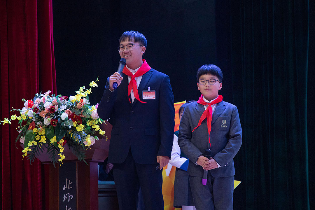 大队辅导员刘基委携上届少先队大队长王一博向大会作工作报告。报告回顾了过去一年的少先队工作,详实有深度,细致有温度,并对未来工作进行了合理科学的安排,得到了与会领导和老师的充分肯定。会议通过了新一届大队委委员名单和第一届少工委委员名单,并现场举行了授牌仪式和团校揭牌仪式。