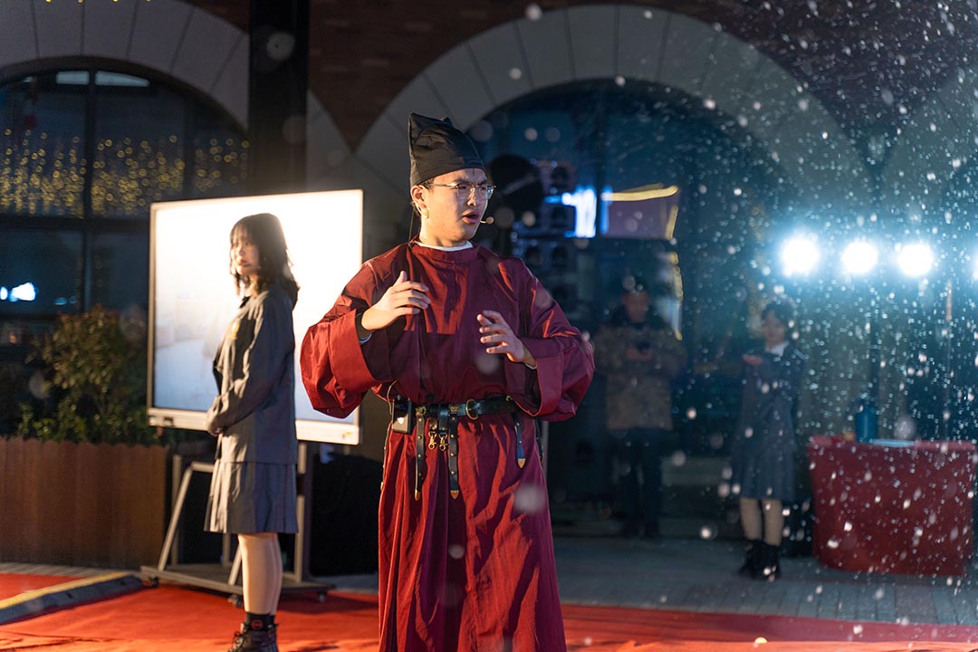一曲曲,琴声悠扬;一帧帧,舞姿婆娑;一首首,歌喉嘹亮。虽是寒冬天气,朔风凛冽,国际部的学子们却洋溢着青春的气息、绽放着自信的光芒,用生动的表演温暖了观众。国际部学子们用多国语言演绎着精彩的故事,展现自己深厚的语言素养。 舞台上一口流利的外语,是学习中孜孜不倦的缩影。晚会里自编自导的话剧,是生活中奋发向上的表现。