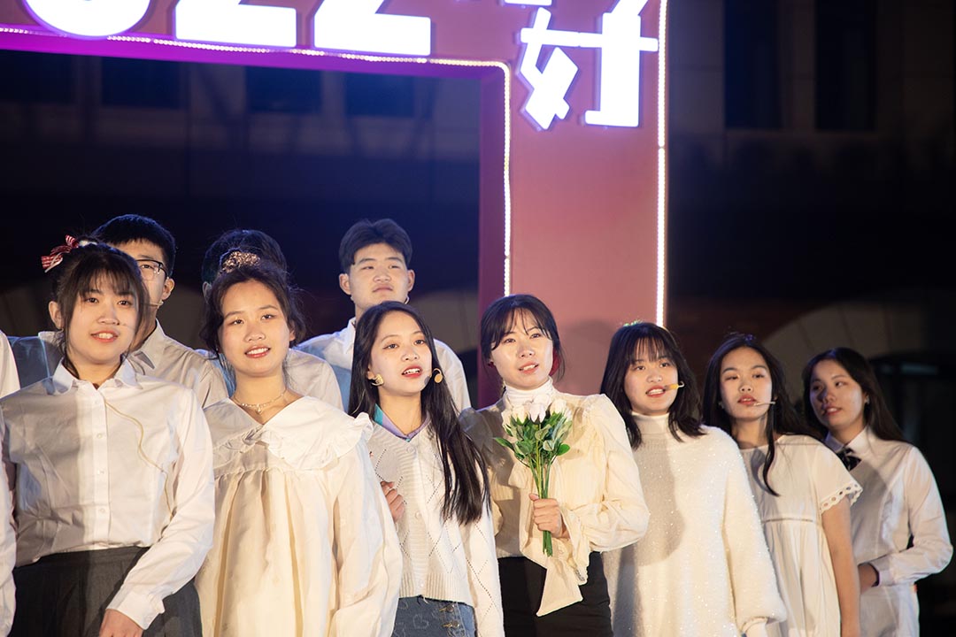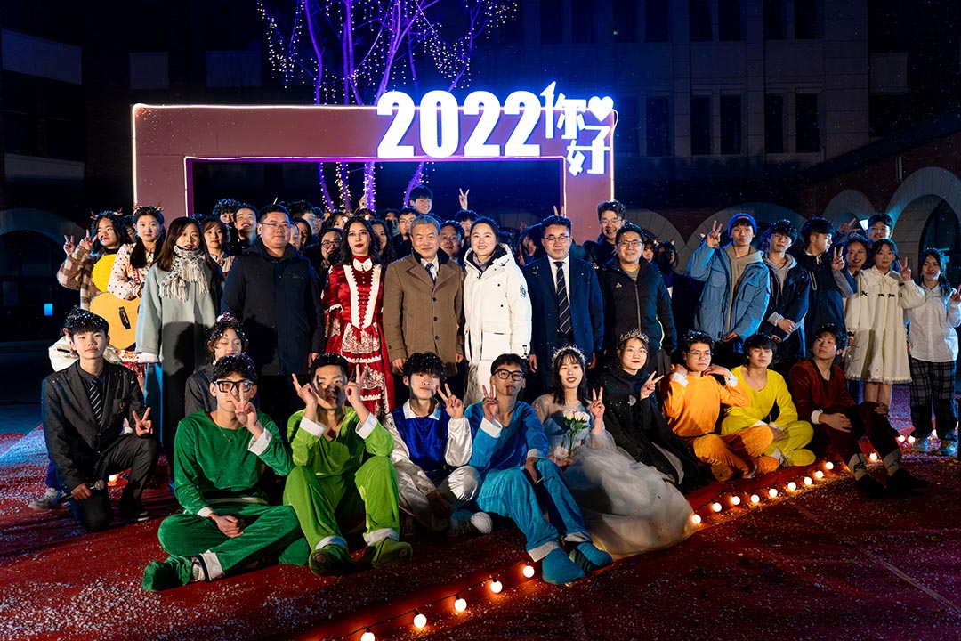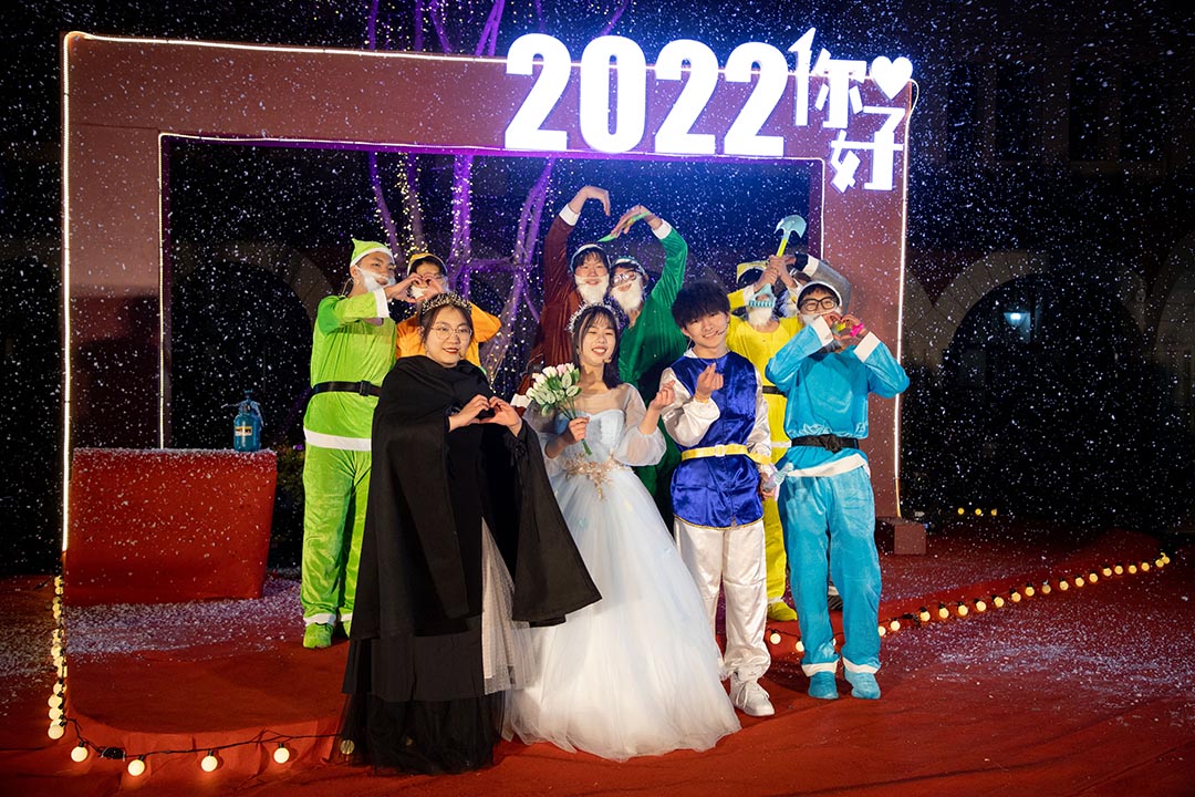晚会在国际部全体师生的合唱声中拉下帷幕。师生齐聚一堂,礼花接续绽放。飘摇的雪花中氤氲着春日的气息,如花的笑靥上镌刻幸福的味道。2022,国际部,一家人,一起拼,一路芳华,共耀星辉!